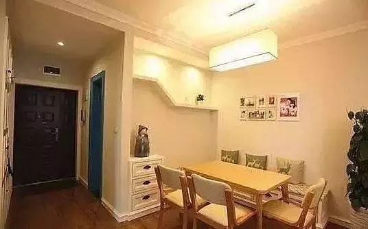 进门后就是餐厅了,因为空间不是很大,为了能节省空间,餐厅做成了卡座式的十分温馨。