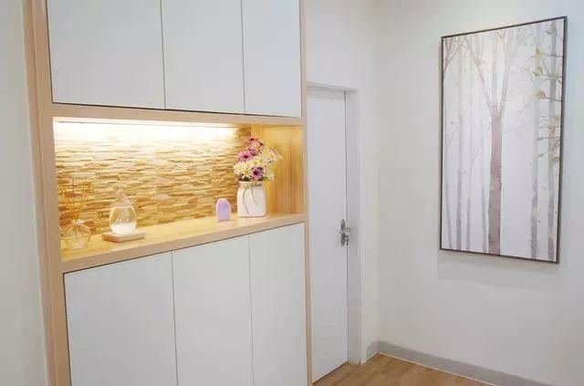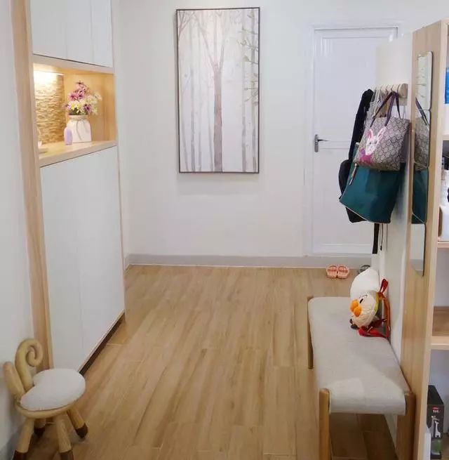 玄关,定制的玄关柜和换鞋凳。