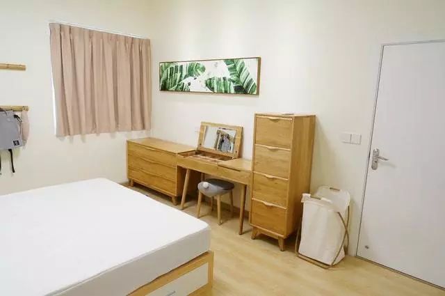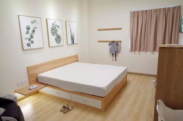 卧室,极简原木风,卧室的床也是可以收纳,底下都是抽屉和收纳柜。