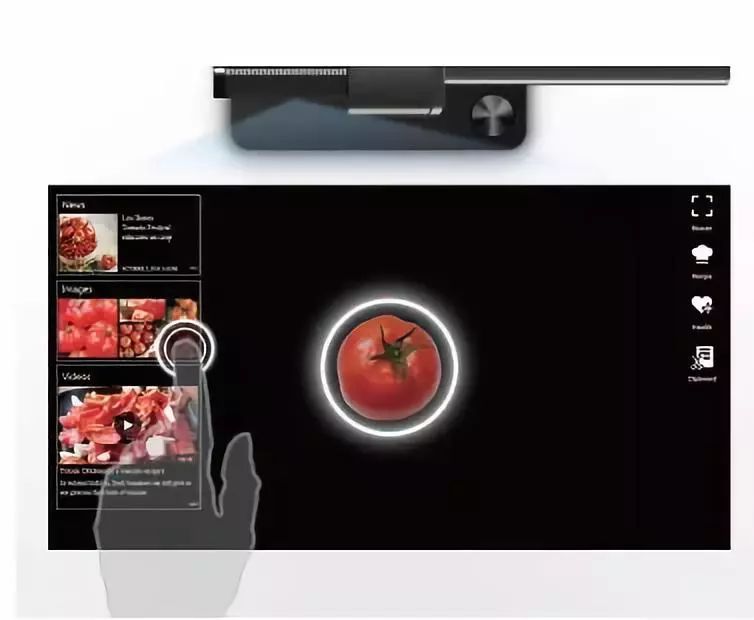 灵感来自家具设计的新一代个人电脑,具有别致的台灯造型。180°的旋转头,将22英寸的显示器投射到桌子上,或120英寸的投影在墙上。在计算机显示模式下,强大的混合现实界面支持最多10指触摸命令,进行缩放、突出显示和选择所需的帧进行识别及在线反馈等操作。