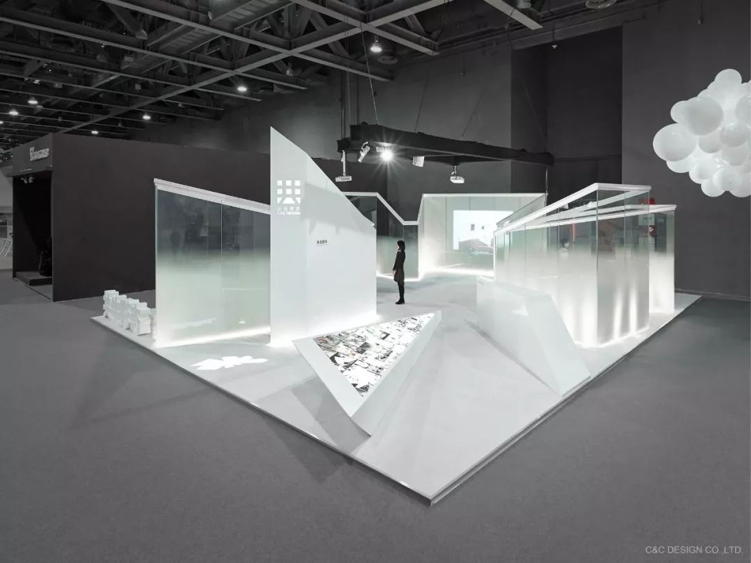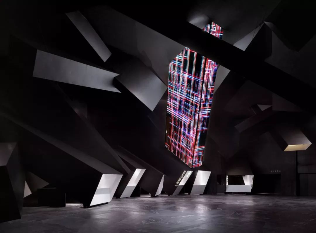 各种形状的三维盒子,黑色和白色吞没了周边,传达了未来感与在灾难电影中独特的孤独感,在混乱之后触发空间中的流星或碎片的关联。几个三维白色涂层金属柱朝不同方向生长,将我们带到新的世界。