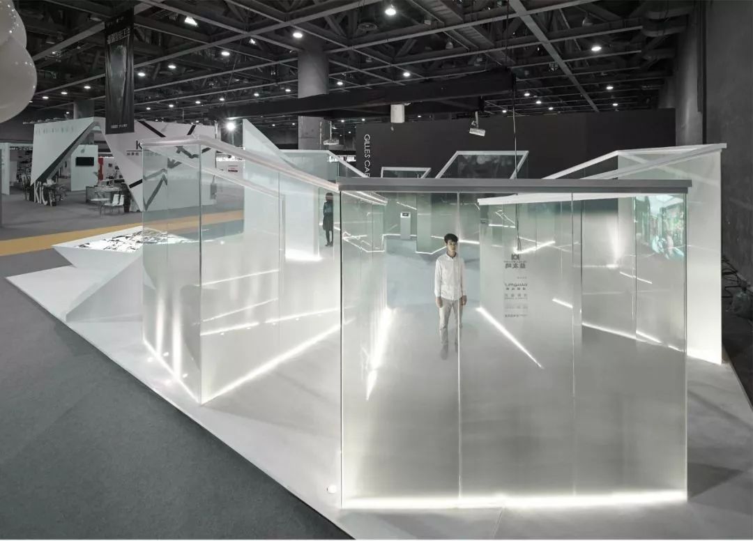 虽然科学技术带来了便利,人际关系变得却越来越疏远,人们常被某种孤独感和失落感侵袭。设计师希望唤起人们对这种状态的反思,HAZE使用渐变夹层玻璃作为高度,给观众一种虚无的感觉,将用户淹没在迷人的透明度和透明度的迷宫中,模糊了展览和路人之间的界限。