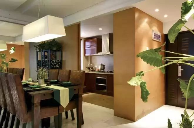 ▲餐厅在入户口,充满异域色彩的前面颜色,搭配上绿植,显得很精致。