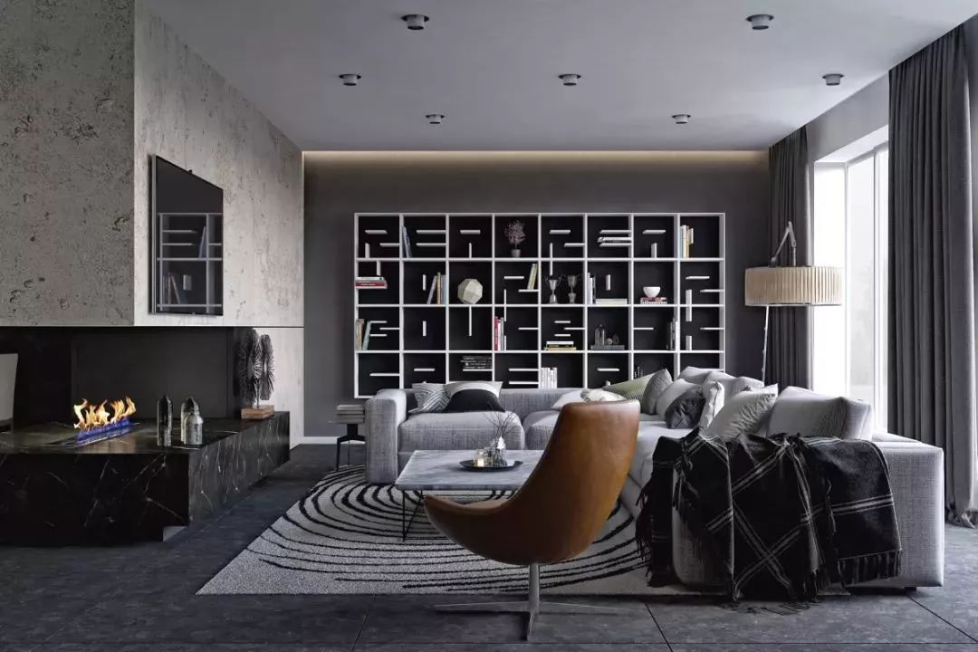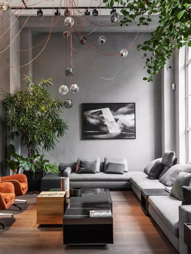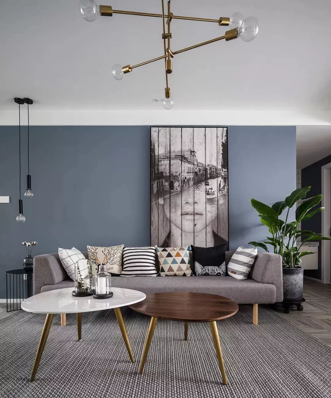 灰色,总给人一种莫名的高级感,它间于白色和黑色之间,比黑色更显活力,比白色更显沉稳,它,从不哗众取宠,深得人们的喜爱,用在客厅墙面,能烘托空间的氛围,让整个客厅看起来高级又具时尚感。