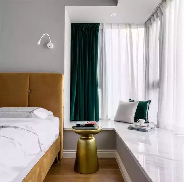 原户型的窗户在拐角位置,设计师索性把它设计成一个飘窗活动休闲区,睡眠坐在窗台上看书或者不想出门的时光,在坐在窗边发呆,看看远处的风景,是很享受的事情。