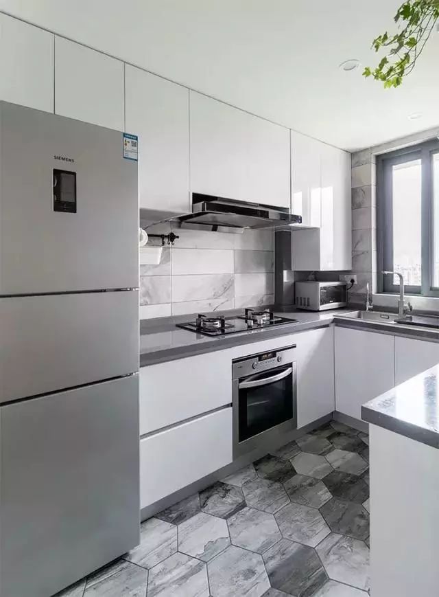 厨房整体非常简洁,以银灰色为主。在选择厨房用品方面,欧女士也非常用心。德奇思的橱柜、方太的洗碗机和油烟机三件套,西门子的冰箱全都是欧女士之前非常喜欢,也用了很多年的品牌,净水系统则选择了德国怡口。