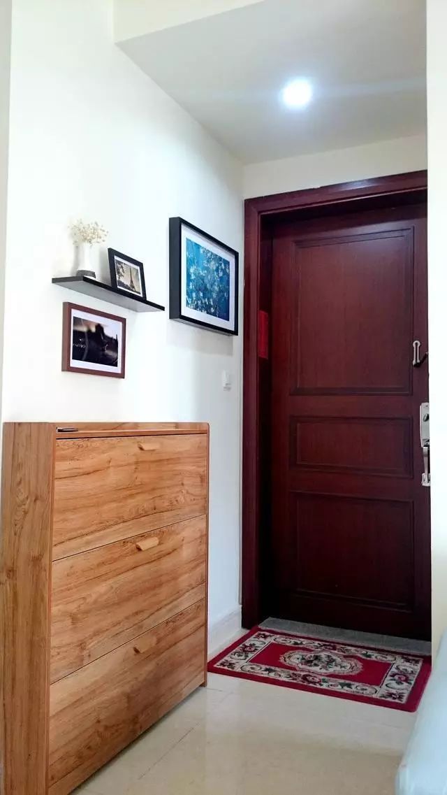 进门一个小鞋柜我们全家就够用了,太大反而占位置了,墙上也做了一些小装饰搭配好好美化了一番