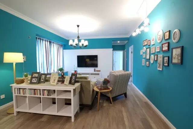客厅是长方形的横庭,因为沙发不能靠墙所以我们在后面摆放了宜家简易的收纳柜,既美观又实用。