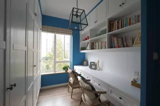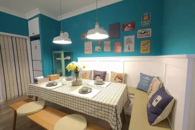 白色的靠背搭配蓝色的墙面,很有小咖啡馆的感觉。