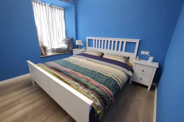 主卧室没有摆放衣柜,而是放了一张1.8米的大床,在搭配一个斗柜,宽敞而实用。