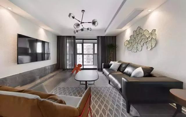 客厅黑白灰的组合营造整体冷淡的基调,搭配简约家具,带来静谧深邃的现代气息。