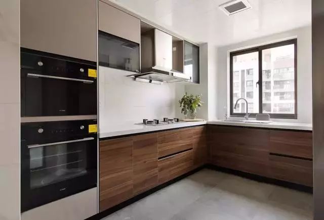 厨房将蒸箱、烤箱等各种厨电嵌入到橱柜中,既节约空间又干净整洁。