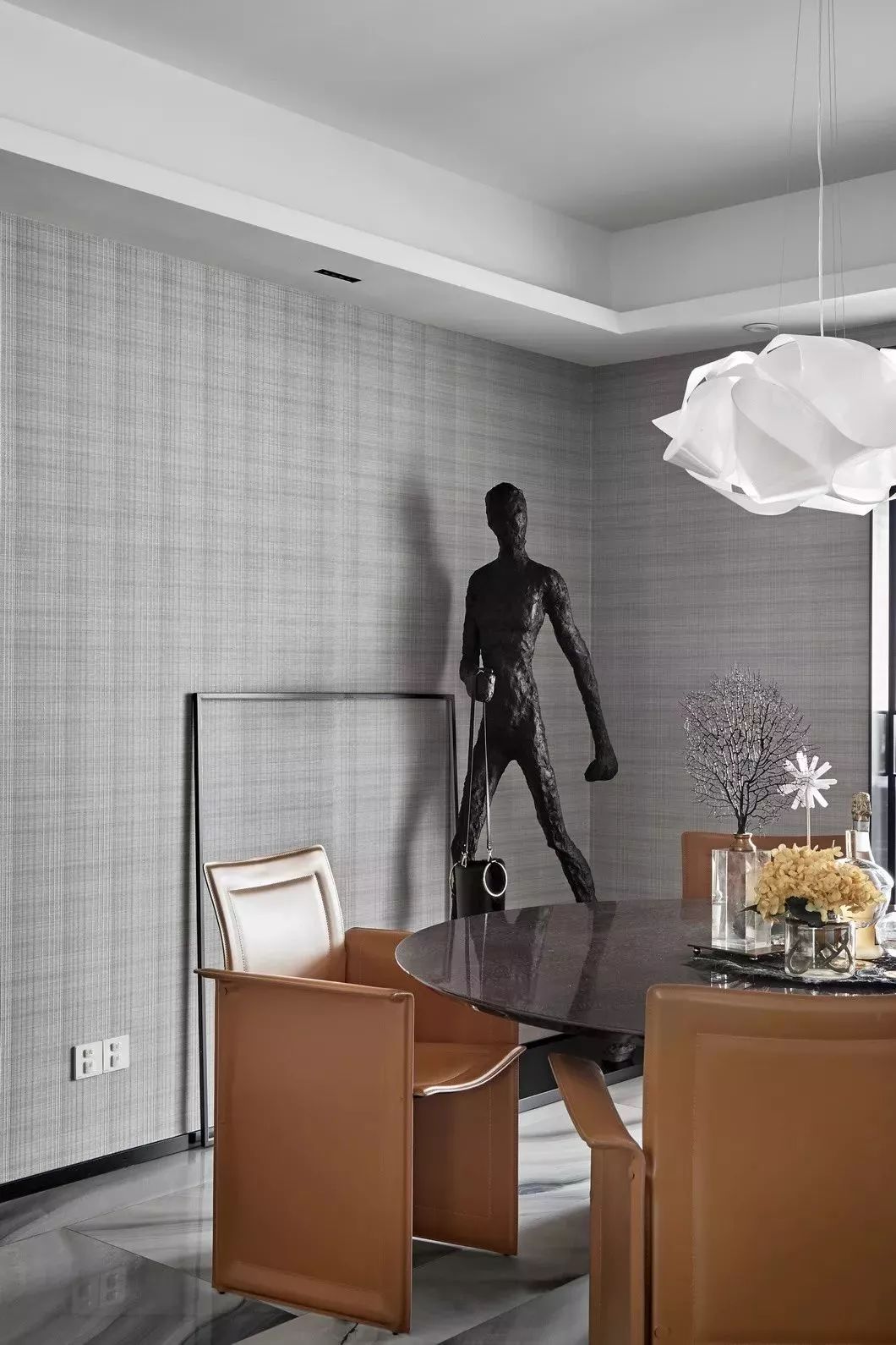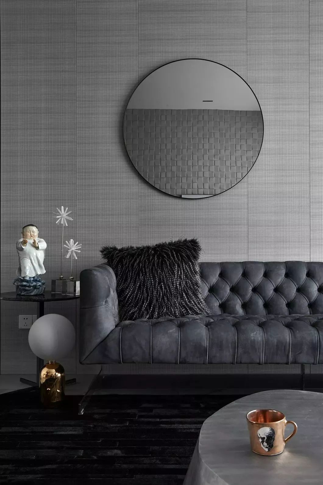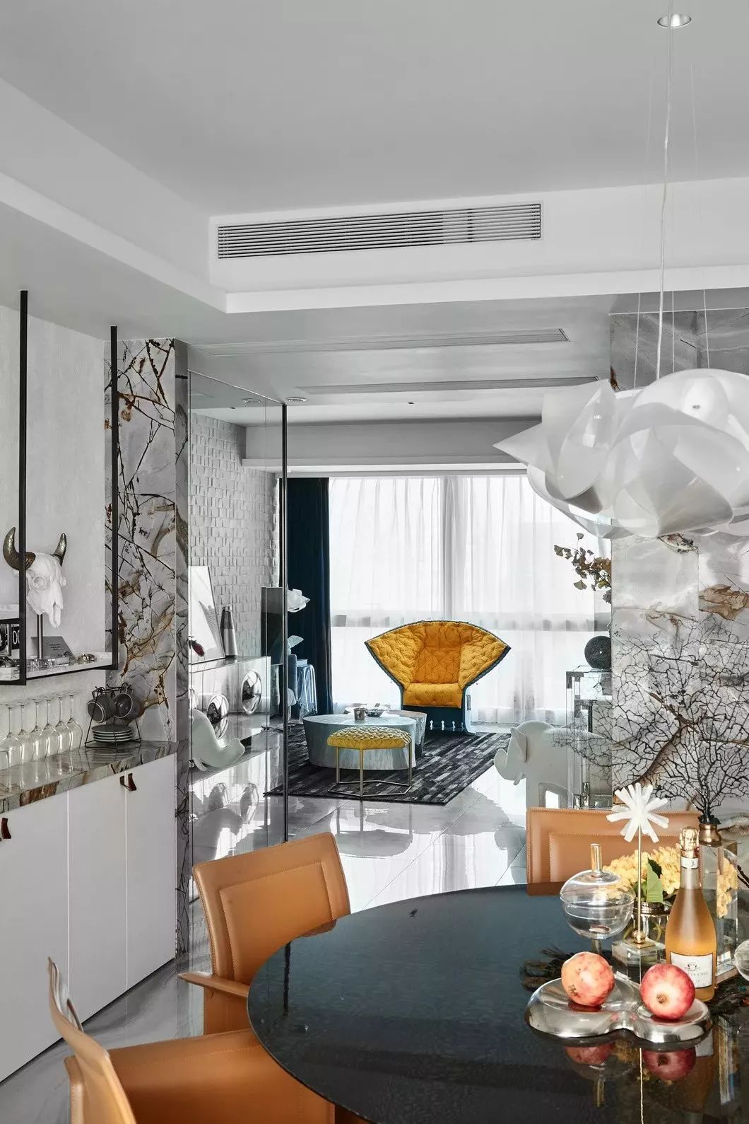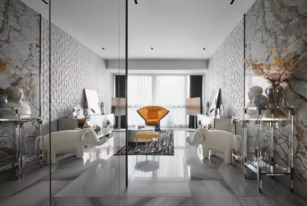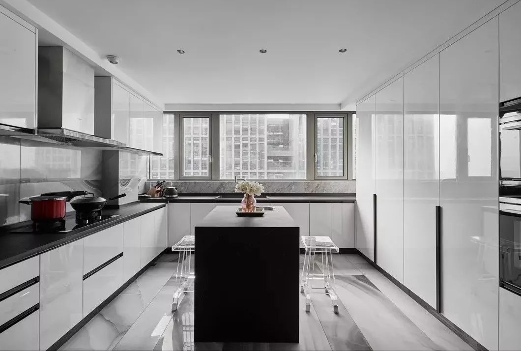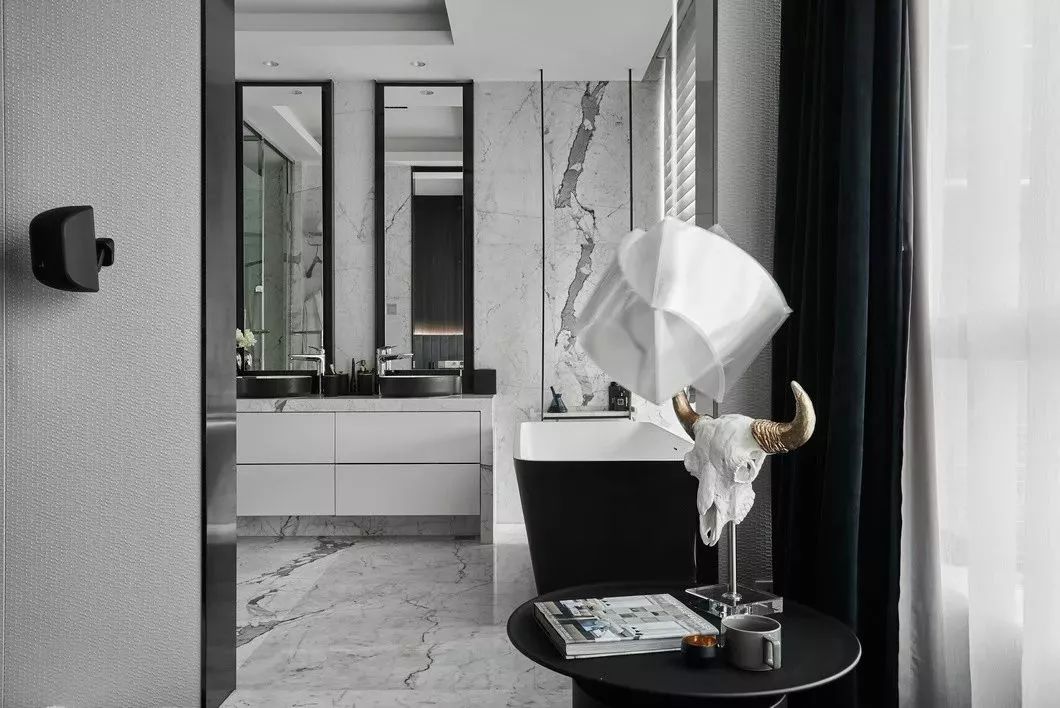 设计的初衷是将空间打造成居住和样板相结合的高端住所,要服务于人,首先要体验于自身,因此一开始便决意加入各种智能系统及进口品牌家居。色调则是以黑白灰定位,并未强调硬性的风格,所有家具软装皆是后期随搭随行,最大程度满足了男女主人所想兼可得的“任性妄为”