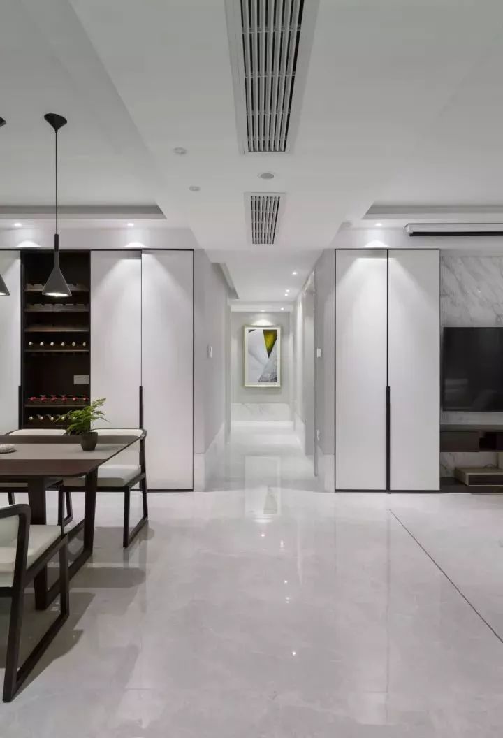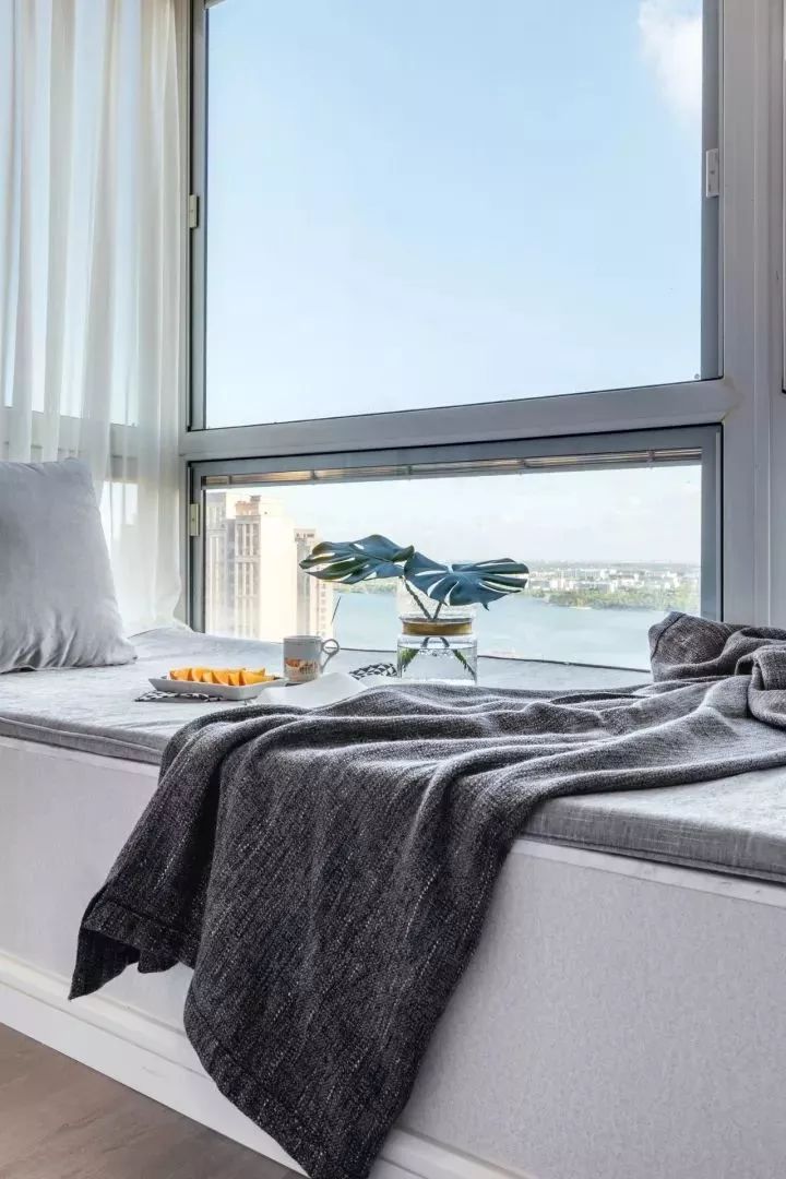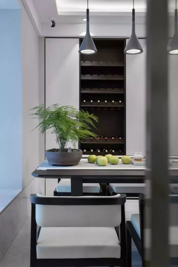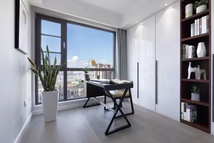 些许深色,让出尘的空间增添了几分烟火气息。梦总会醒来,生活不是一尘不染,深浅过度,避免单一的乏味,虚实结合,黑白相间,干净利落,轻重对比,大气磅礴,在光影间,置喧嚣不顾,窗外蓝天白云,窗内绿意和木制,优雅舒适, 生活与自然都美的很轻易。