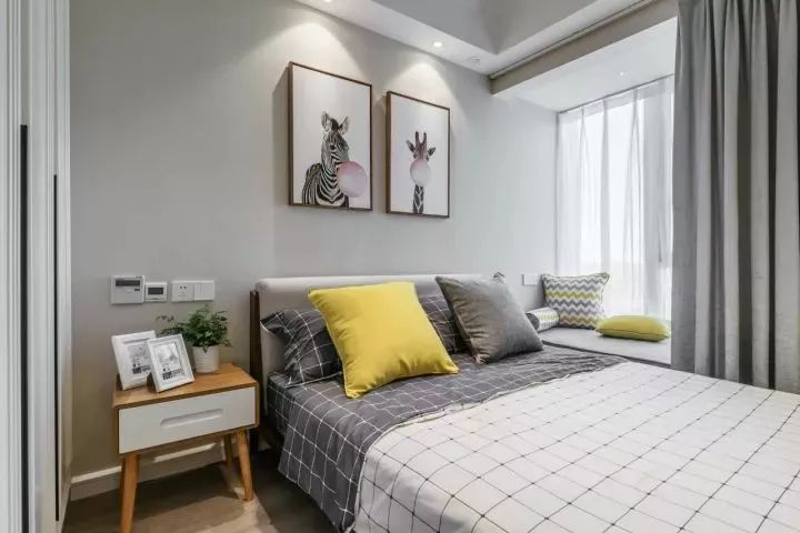 这个多功能水吧的巧妙设计解决了起夜喝水以及小朋友泡奶等问题,并且在柜子里嵌入了小冰箱,方便在主卧这个私密空间里让每一次休憩都可以无所顾虑。