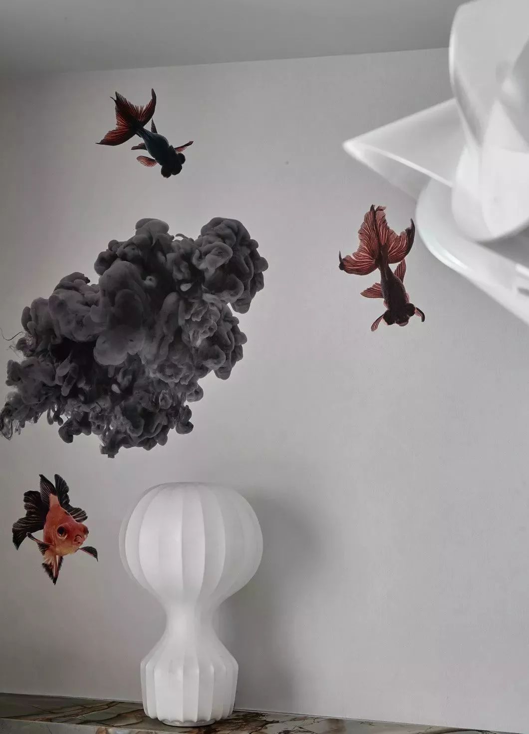 餐厅是家人齐聚时交流谈心 共进美食的区域,男主人对鱼情有独钟,因此在餐厅墙上游戏着各式各样的小金鱼,而餐厅上方Slamp Fabula 系列的吊灯和鱼儿嬉戏的场景相得益彰