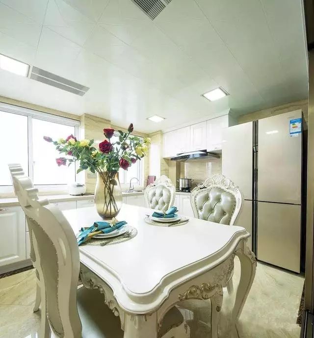 欧式餐桌椅看着就是大气,而餐椅选用的颜色还是与客厅沙发一致的色调,所以整体是既时尚大气又很优雅~