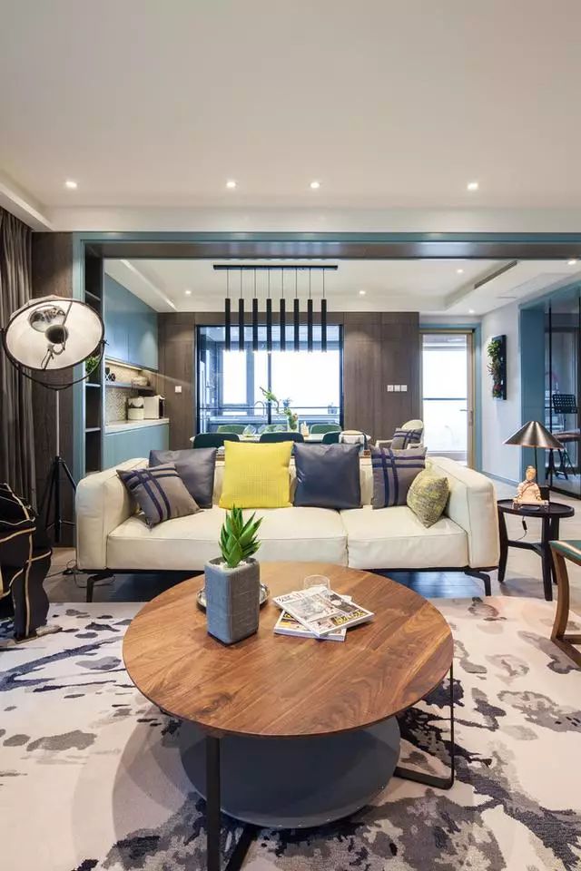 将镜头聚焦在原木色圆形茶几上,也是一副不错的画。