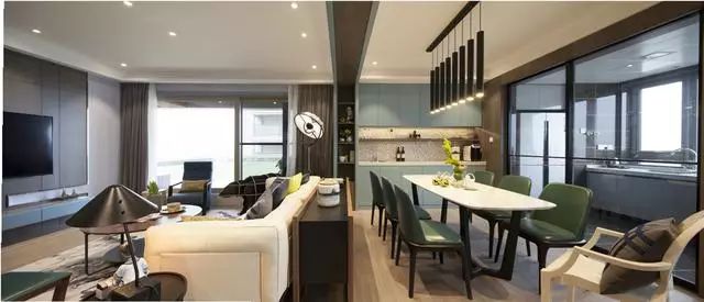 客厅与餐厅做成一体,增加视觉空间感,更显大气和谐。