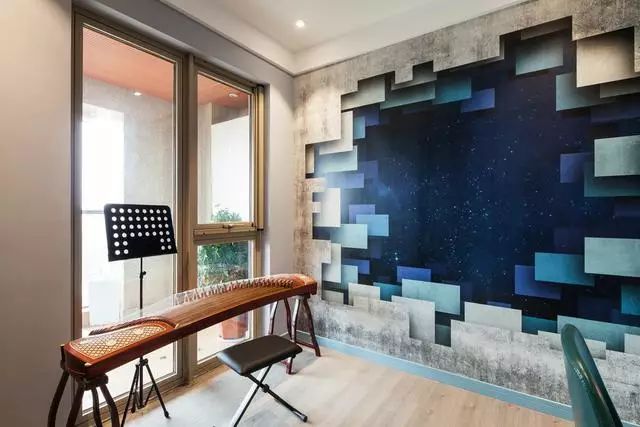 3D效果的星空壁纸,成了书房的设计亮点,要不要给你家也来一款试试?