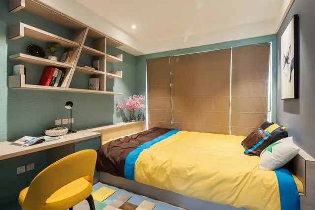 另外一间次卧,做成榻榻米,通过对色彩的巧妙的运用,展示出较强的冲击力。