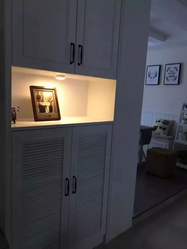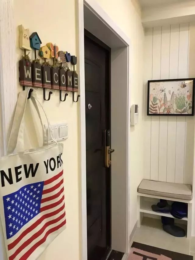 换鞋座椅的设计非常实用,晚上回家,进门有个感应灯照亮,坐下换鞋准备吃饭,很温暖。