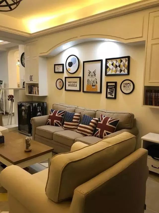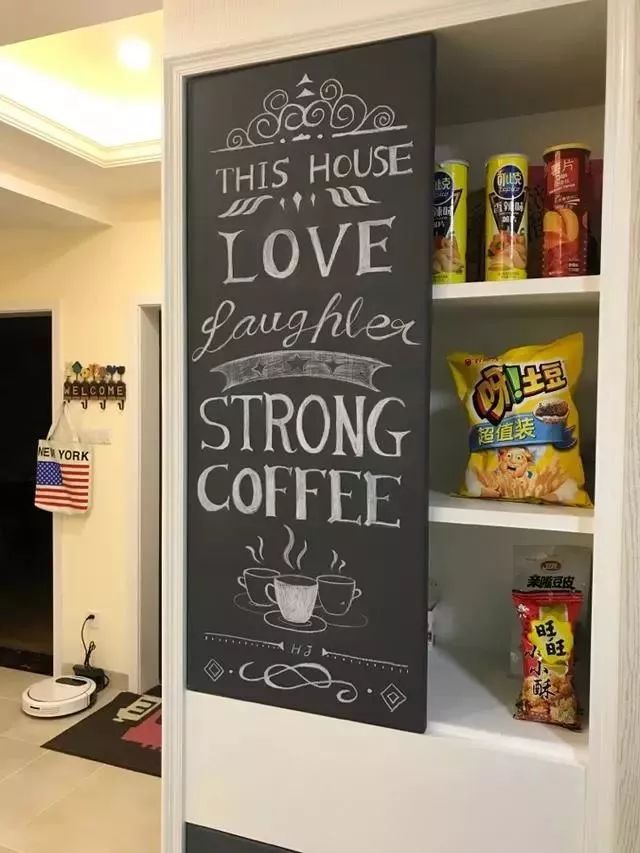 业主更有创意的是,在冰箱上贴画,细节处增添美式氛围。