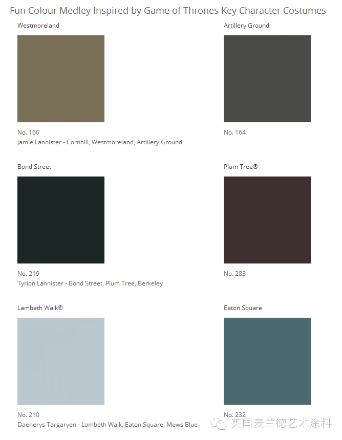 • 在此前几季中,Mylands为“权力的游戏”剧组提供了超过3,060升涂料——这些涂料足以用来粉刷大约308个新家(基于每个家庭面积为80平方米);