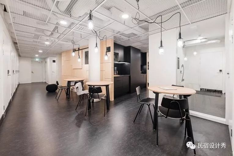 设计团队摒弃了典型的宿舍式房间,利用 1950 年代的空旷建筑,创建了一个拥有小型私人卧室、公共空间的开放式旅馆氛围。