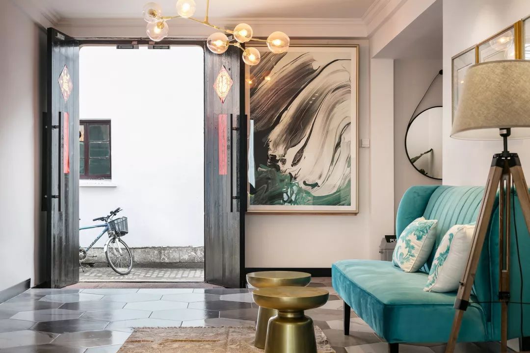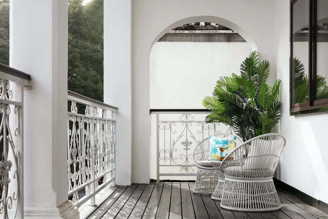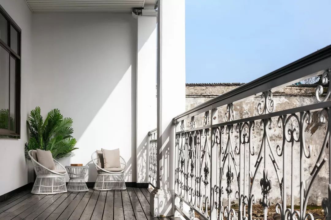 江浙的民宿绝大部分为冷色的灰白调性,而苏邸位于双林巷的深处,房子古旧。设计师觉得在这样的环境中居住,会给人压抑感。于是在设计过程中,设计师把这个本来灰色老旧的建筑改造成了大面积的白色及色彩点缀的空间,希望带给人清新舒适的感受。