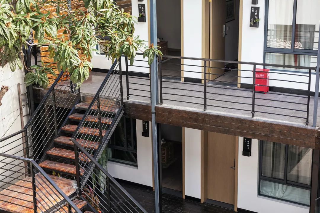 传统的院子是一个较为私密的居住空间,庭院内违章搭建的建筑已破败不堪。而民宿的居住特点则相对开放,设计师希望通过庭院这个半公共的空间,加强人与人之间的交流。在改造的过程中,拆除违章建筑,保留部分植物,重新规划院内景观,根据小院的地形及房屋特色打造出民国花园的感觉,给民宿中的客人提供了多样的公共空间。