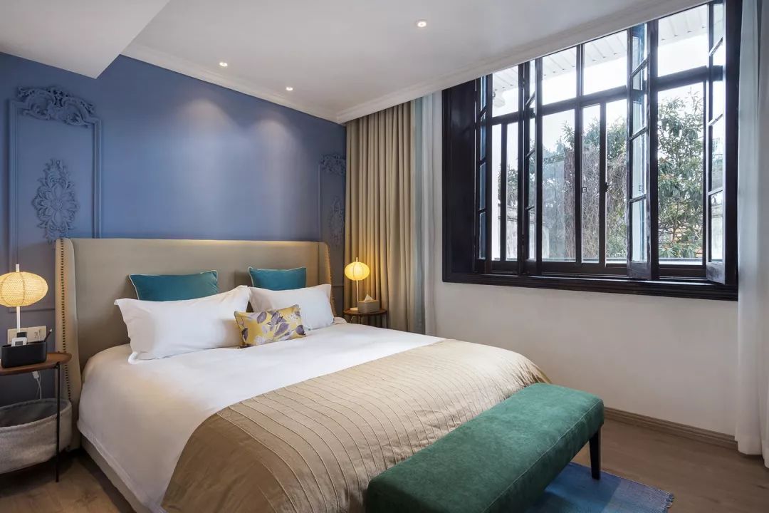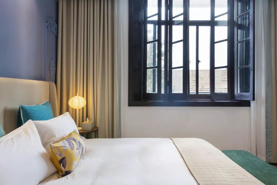 民宿运营后根据客人的反馈发现,其实年轻人及带小朋友的家庭非常喜欢这样的设计。小孩子其实很惧怕居住在老宅子里,但是他们喜爱这样柔和明快的色彩。