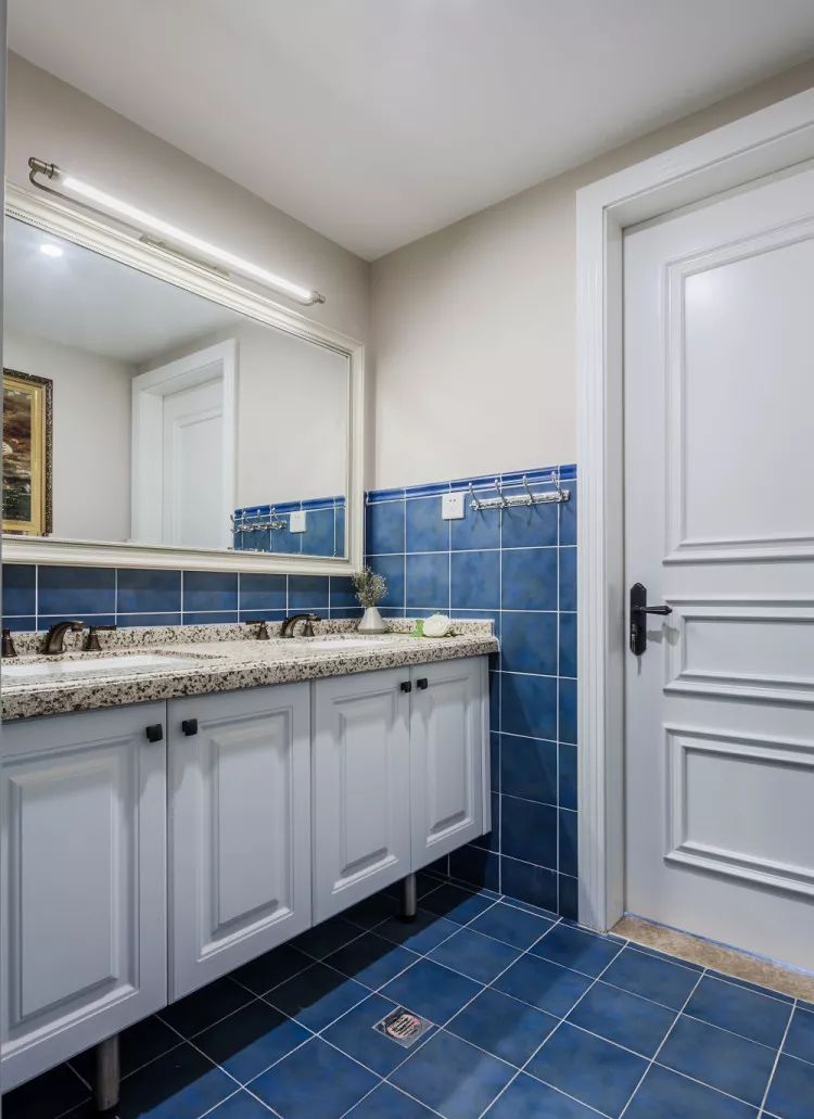 卫生间色彩干净清爽,细腻宁静,给人一种很浪漫的地中海的感觉。