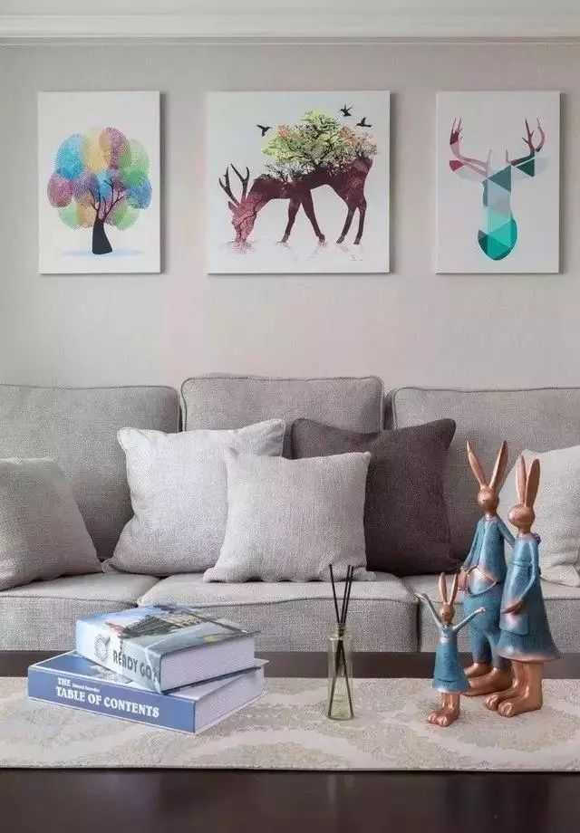 沙发墙挂几幅彩色挂画,为空间增加一些活力。