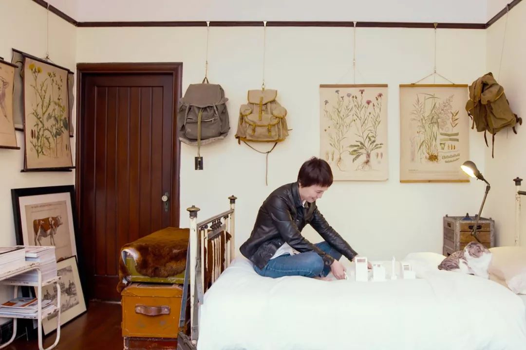 屋内随处可见灯具、床具、工作台和老式工具柜……