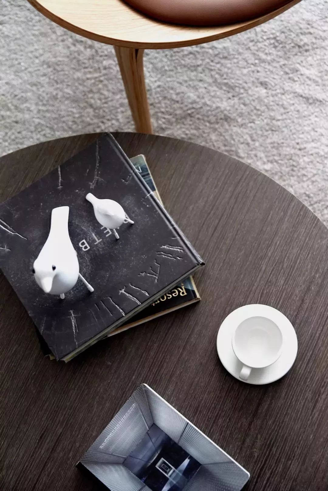 低矮的木质茶几,搭配白色小鸟点缀,将质朴与时尚演绎得恰到好处。
