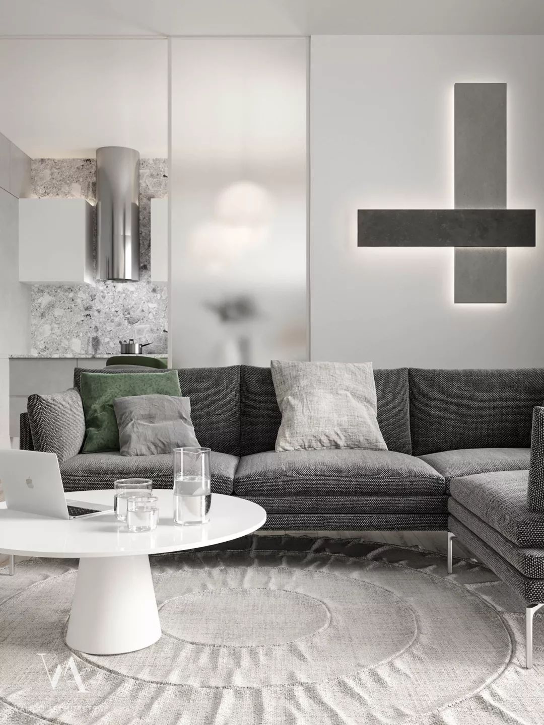 在白色墙面和灰色的衬托下