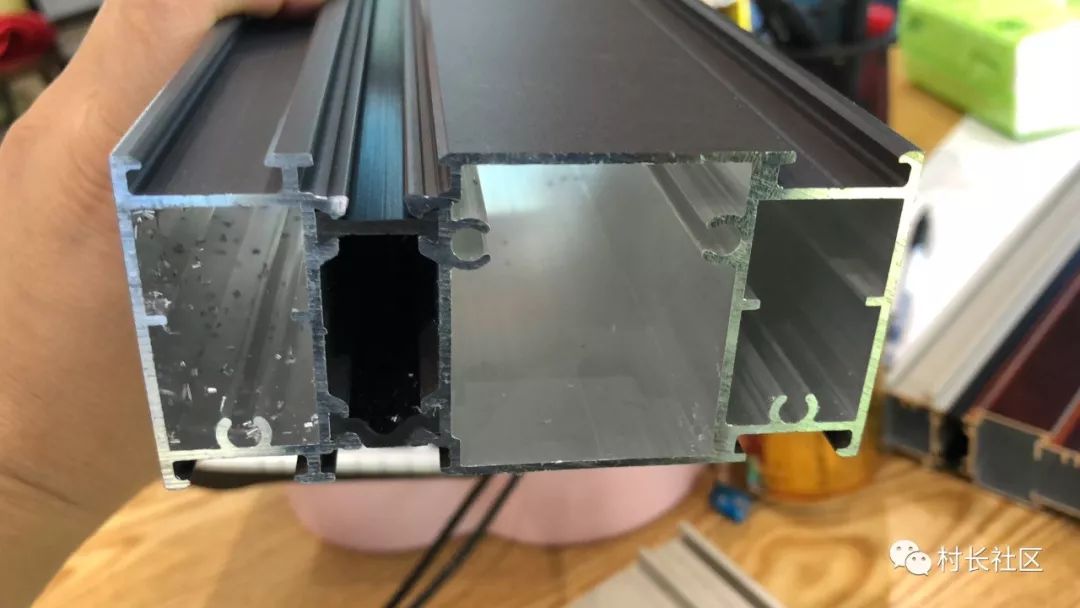 4、看厚度:常用70、90系列的铝窗型材,其壁厚应为1.2—2.0毫米。阳台窗铝型材壁厚国家标准为1.4mm ,大部分的阳台窗型材壁厚1.4-1.6,无框窗上下梁沉重部位的厚达3-4mm,远超国家标准。、
