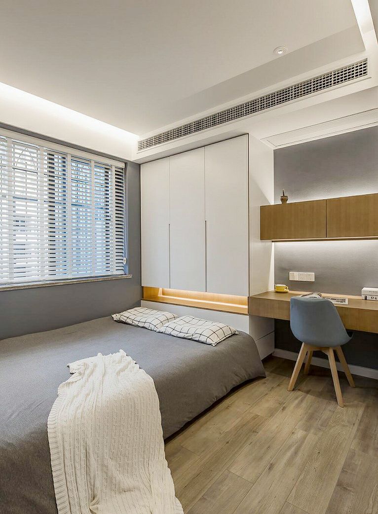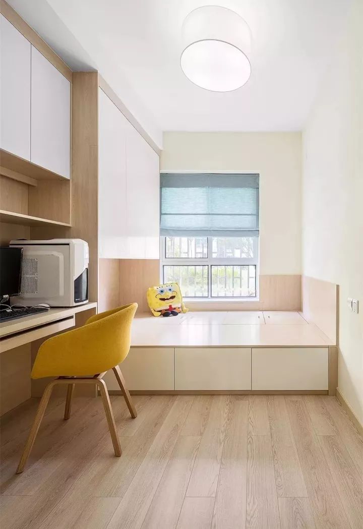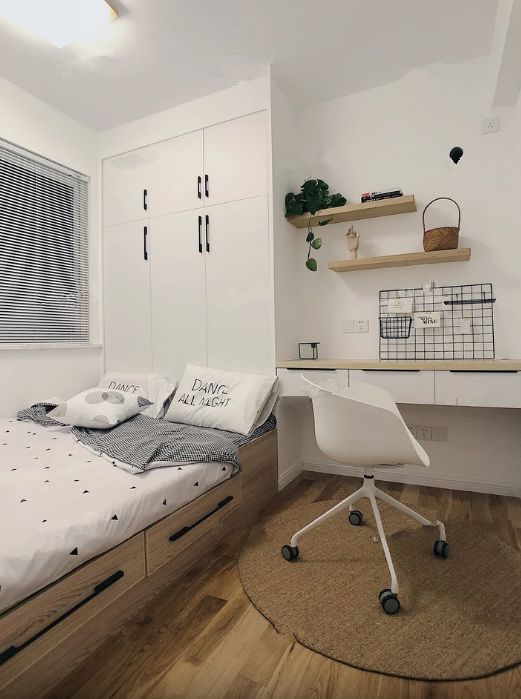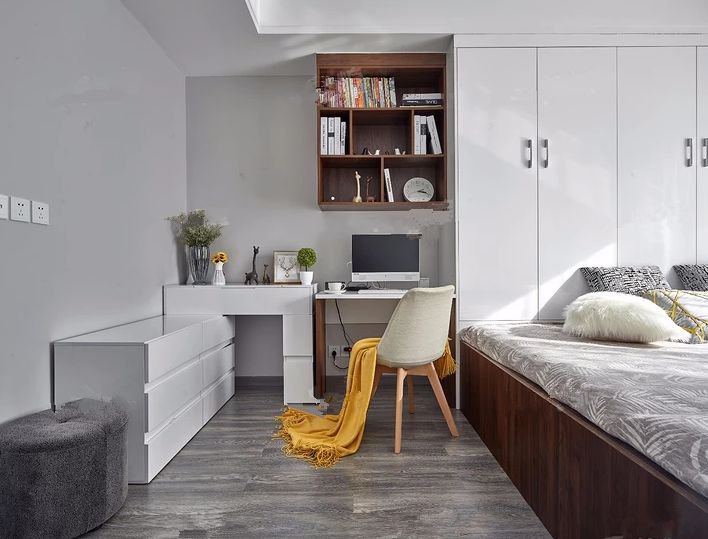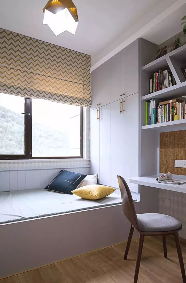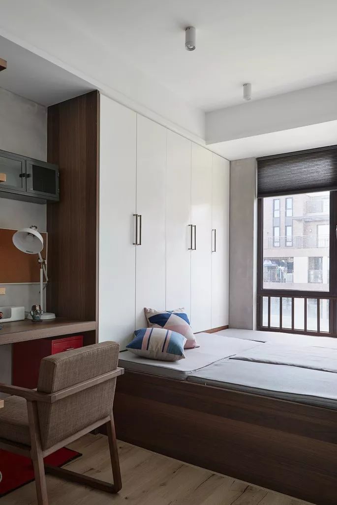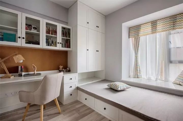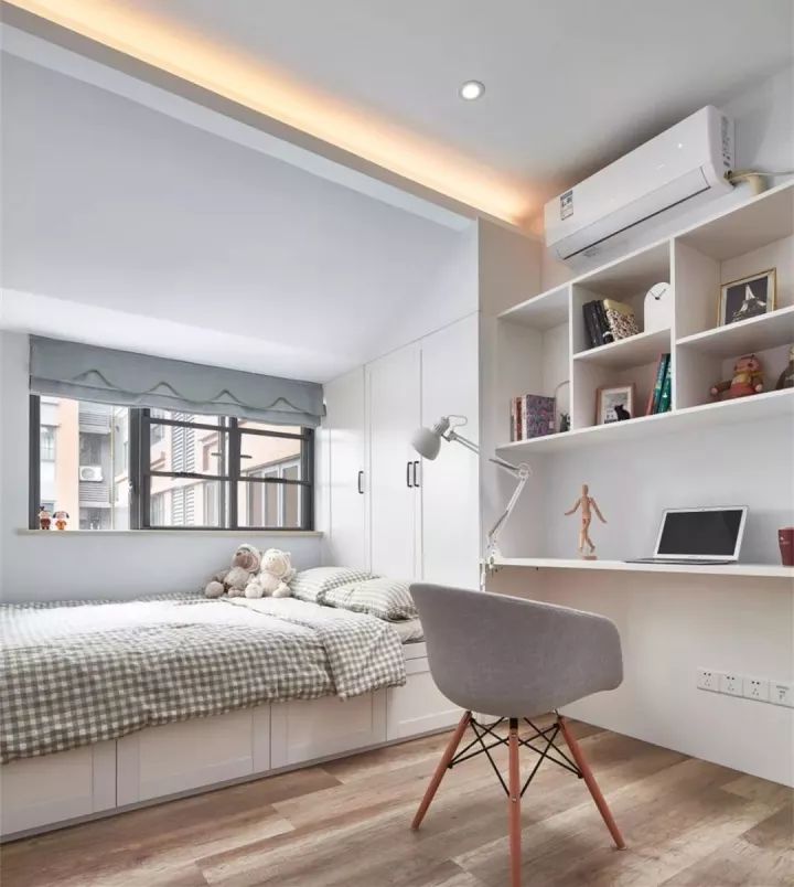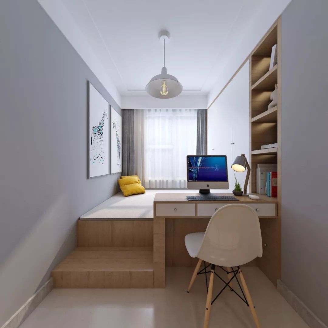 其实只要我们转变思维,利用设计来实现我们的梦想也不是不可能的,比如卧室里设置榻榻米地台,书桌衣柜一体设计,这样不仅可以收纳衣物,也可以用来办公学习,一举多得。
