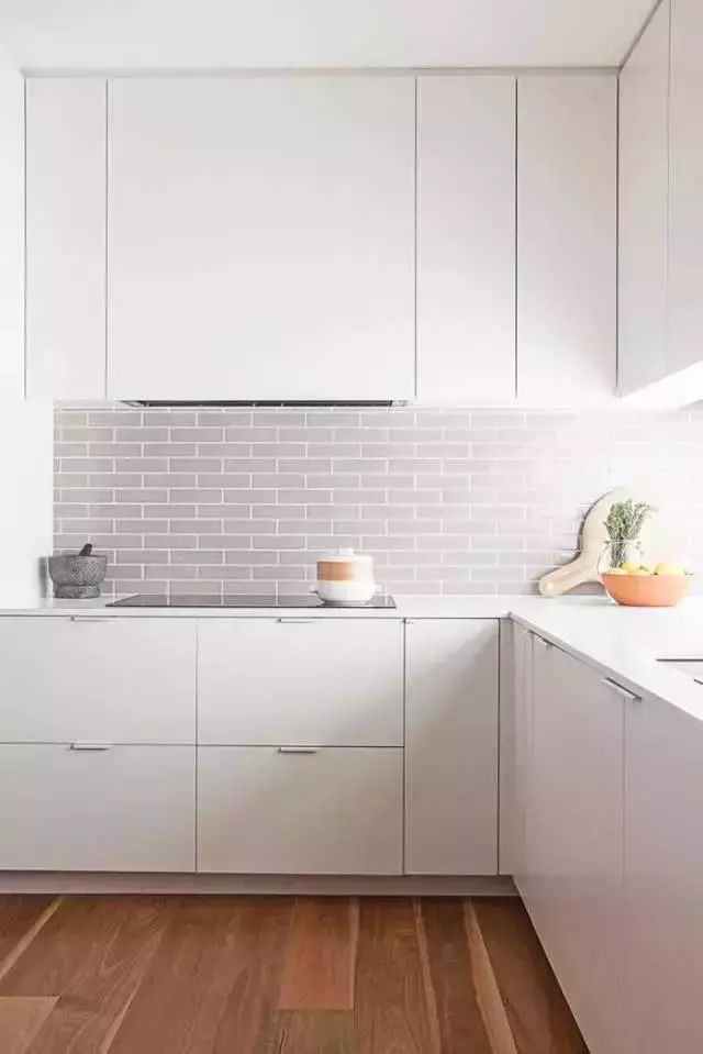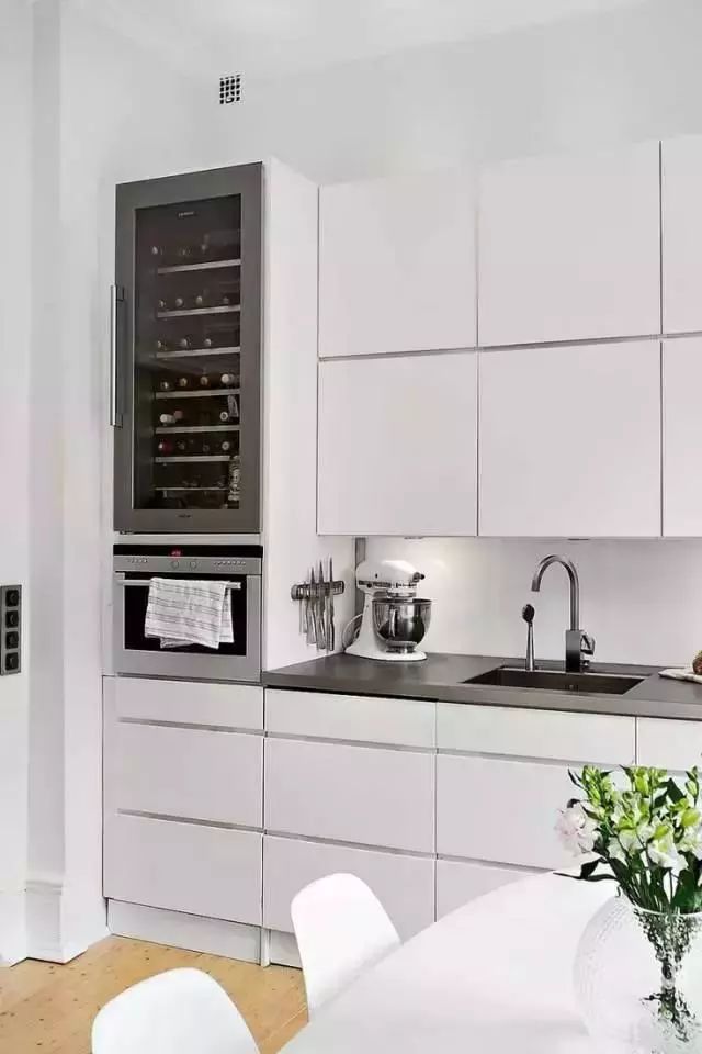 白色的橱柜让人百看不厌,它给人以纯净无瑕的宁静之感。无论与何种材质的厨具搭配,都能保持清新素雅而不失活力的本色。