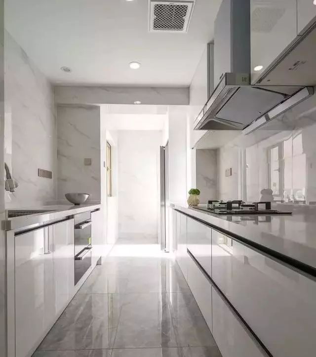 禁欲系的白让人沉醉,带来一股清凉而又纯净的气息,既凸显了厨房的洁净,又彰显出现代简约之美。