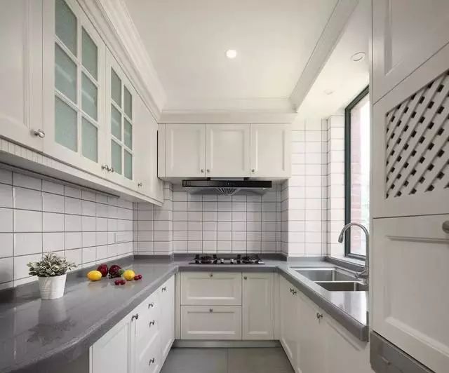 欧式或者田园风格还可以选取模压板,对厨房的保险度来说,白色永远不会过时,且能保持洁净、温馨的感觉。