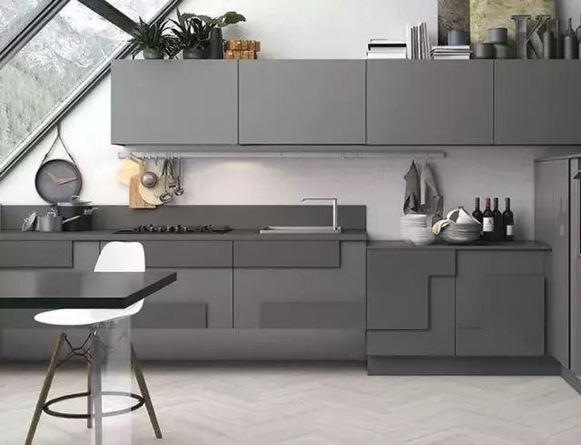 高级灰橱柜打造出“灰”独有的清冷与沉静氛围,干练、大气不失尊贵。