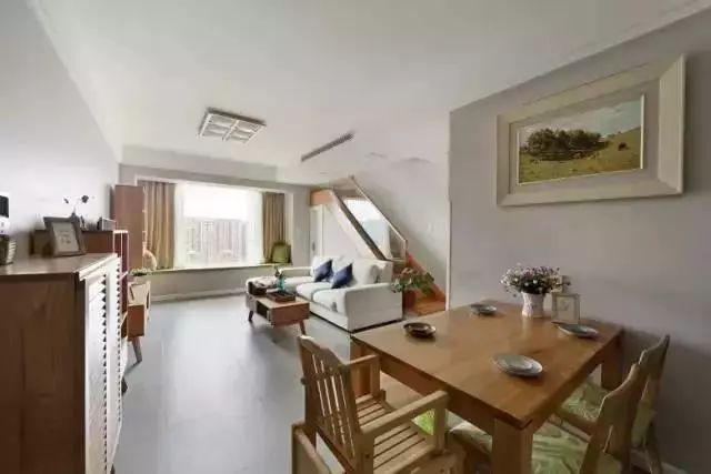这套房子是个面积仅120平米的小复式,虽然面积小,但好在有个顶层露台,通过设计,将家居环境打造得舒适又温馨,特别是客厅大飘窗,让人仿佛置身于大自然中,感受一下自然的清新,瞬间放松身心。