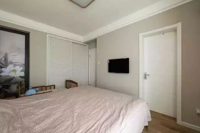 主卧床的正对面装有壁挂电视机,便于孩子观看益智节目,同时还增强了父母与孩子的相处乐趣。