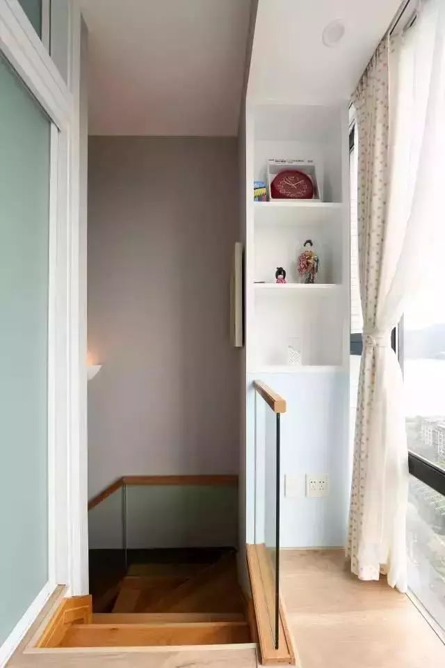原木色的楼梯搭配上玻璃扶手,显得很时尚,而且脚踩上去后会感到非常舒服。