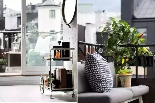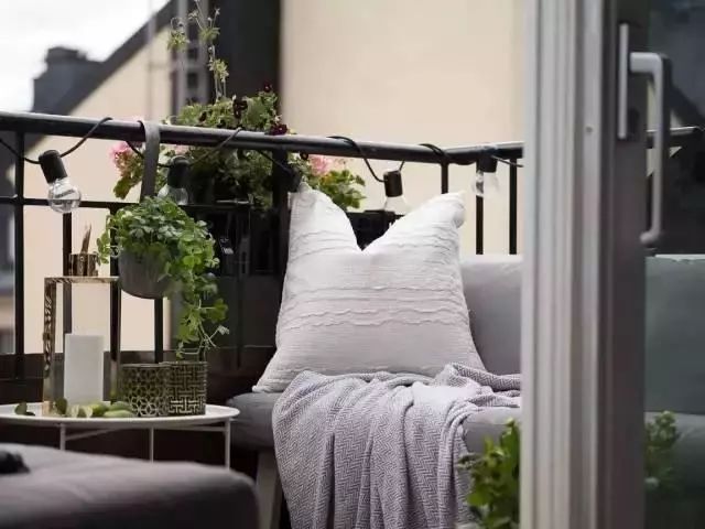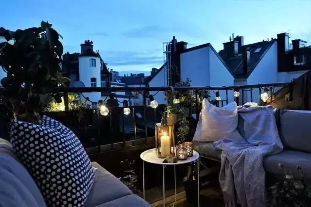 夜幕降临,一只只小灯泡发出明亮的光,照亮了阳台,也彰显出浪漫精致的格调。