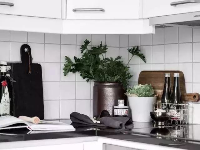 橱柜与墙面的衔接处,刻意留出了一段距离,平时用来放置一些陈列物品妥妥的。