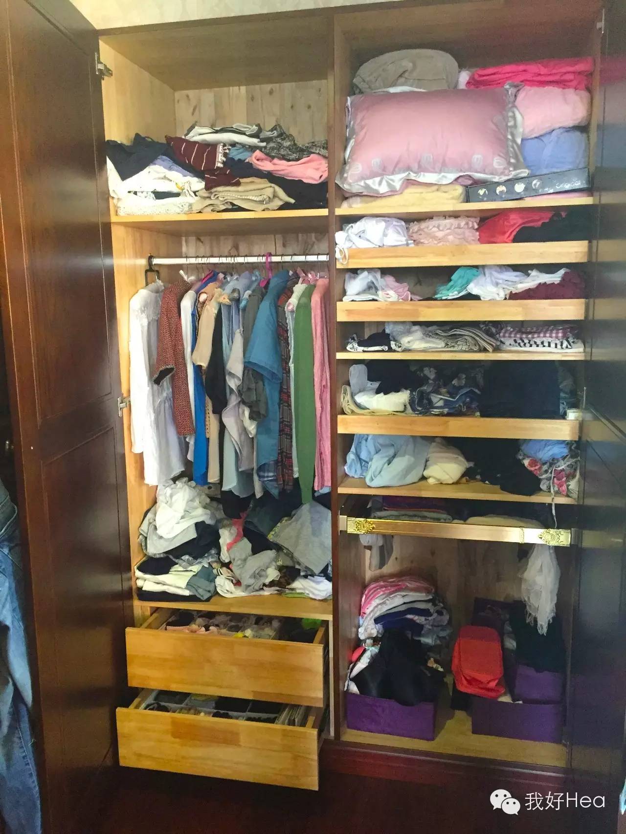 M小姐家的衣橱并不是hea姐见过最乱的,甚至前十都算不上,但是本着完美主义和处女座情结,这样的衣橱还是有不少吐槽的地方。