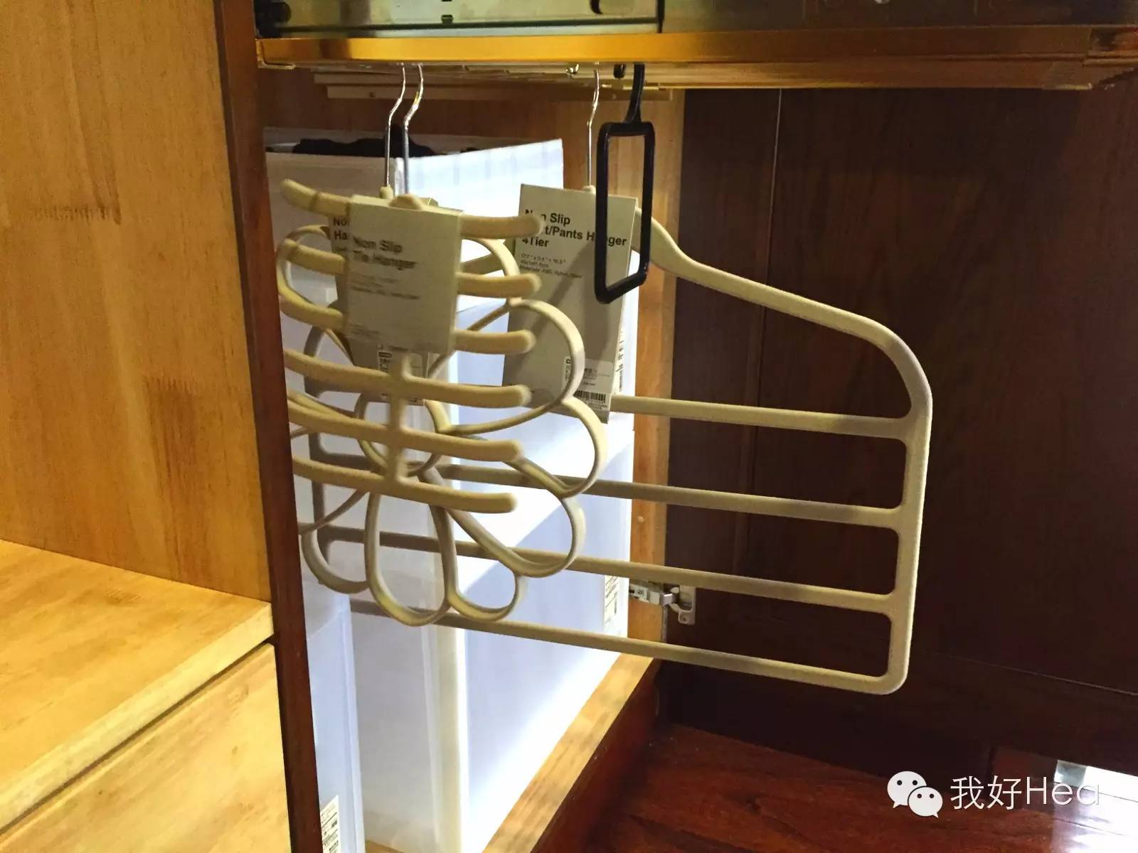 法宝就是这些花样百出的衣架,可以360旋转的衣架头能够适应各种架子